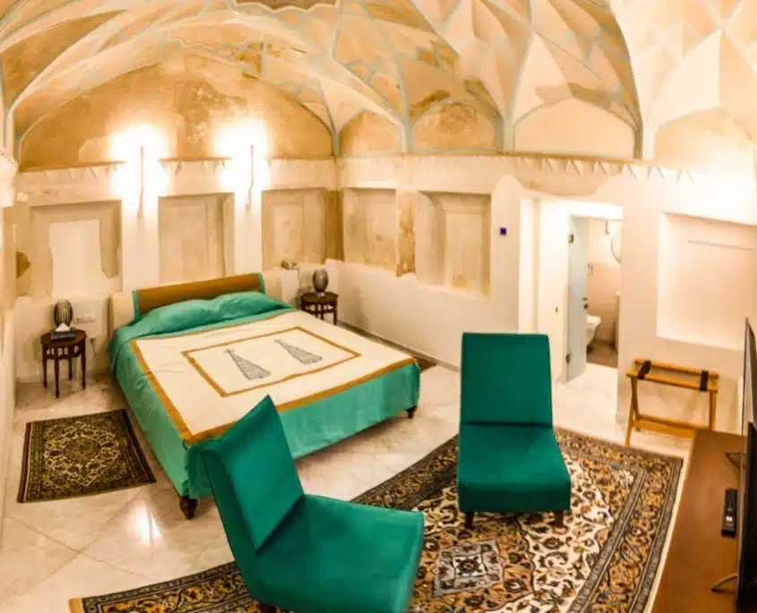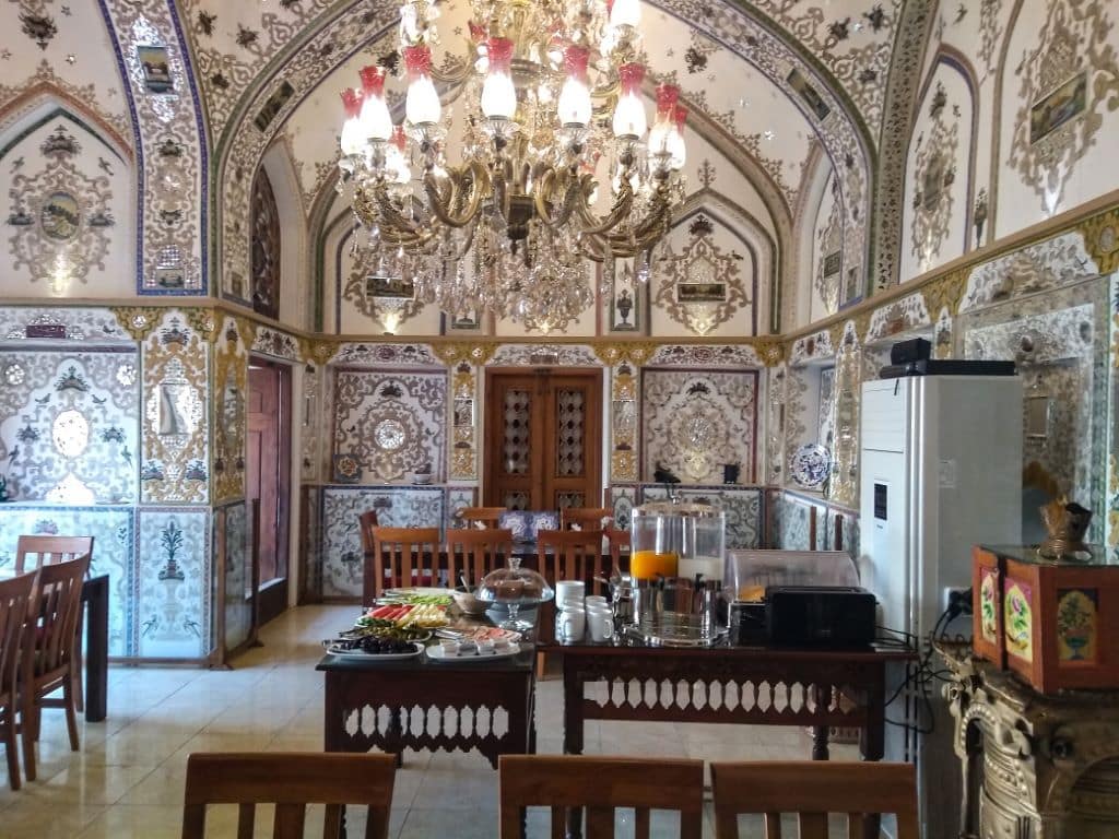Этот отель один из самых известных отелей Ирана. И тоже, являющийся национальным достоянием, был одним из первых бутик-отелей в Иране. В 18 веке этот особняк принадлежал правителю Кашана, который был богатым купцом. В настоящее время в этом отеле 9 номеров и 6 королевских люксов.